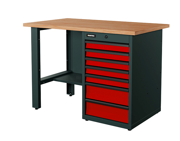 Верстак серии Industrial, 1200 мм, фанера, тумба с 7-ю ящиками, красный RAL 3020
