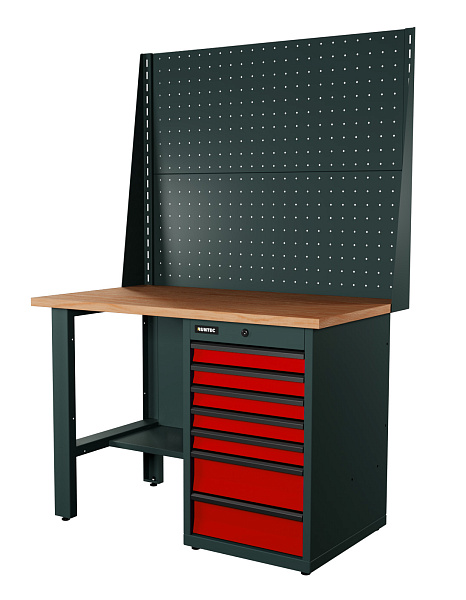 Верстак серии Industrial, 1200 мм, фанера, тумба с 7-ю ящиками, экран 1000, красный RAL 3020, RUNTEC, RTI12F-TI7-NI-P12-P12-3020