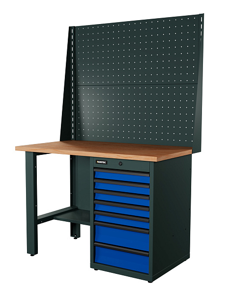 Верстак серии Industrial, 1200 мм, фанера, тумба с 7-ю ящиками, экран 1000, синий RAL 5005, RUNTEC, RTI12F-TI7-NI-P12-P12-5005