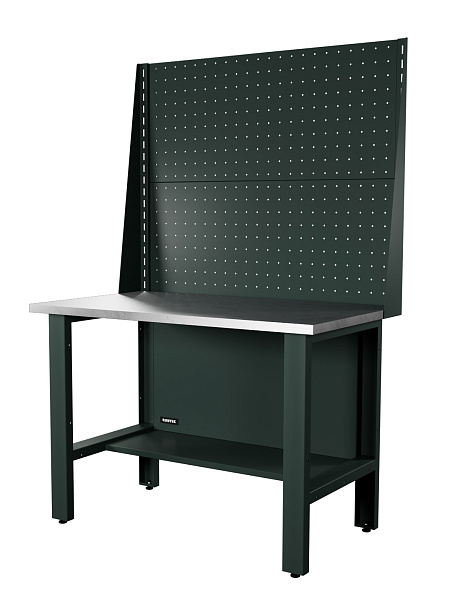 Распределенная нагрузка на верстак достигает 1500 кг благодаря использованию конструкционной стали толщиной от 1 до 2 мм при производстве сборочных составляющих. Эпоксидное порошковое покрытие устойчиво к механическим и химическим воздействиям.