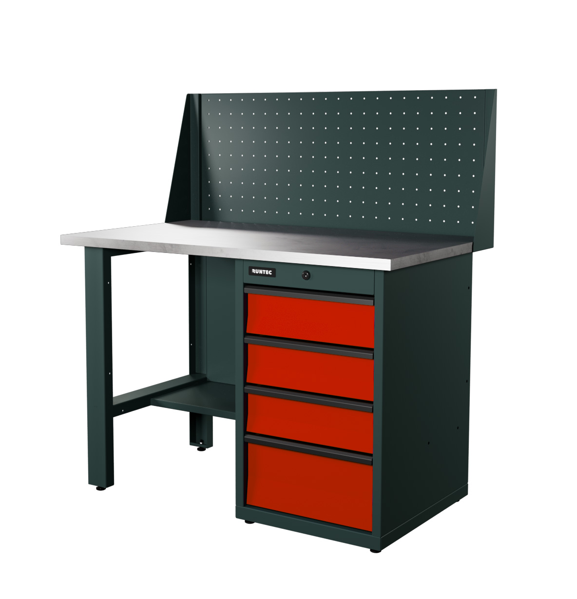 Верстак серии Industrial, 1200 мм, оцинк., тумба с 4-мя ящиками, экран 500, красный RAL 3020
