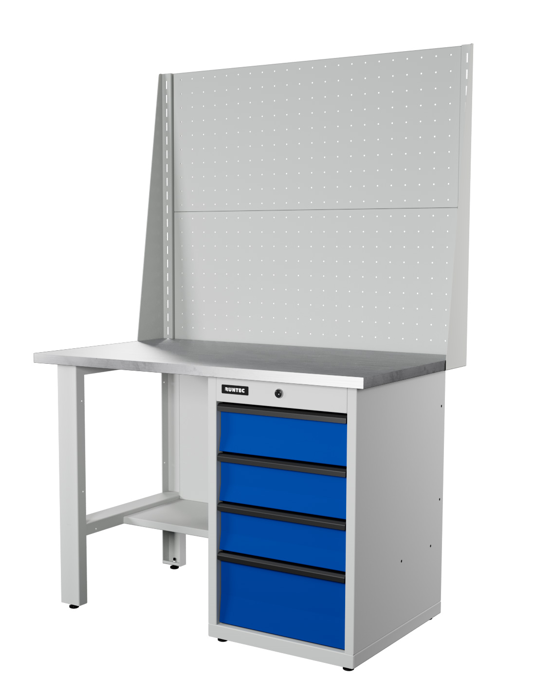 Верстак серии Industrial, 1200 мм, оцинк., тумба с 4-мя ящиками, экран 1000, синий (светло-серый) RAL 5005 (7035)