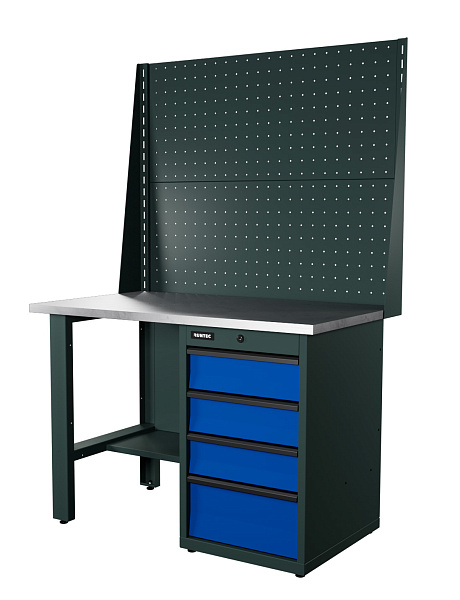 Верстак серии Industrial, 1200 мм, оцинк., тумба с 4-мя ящиками, экран 1000, синий RAL 5005