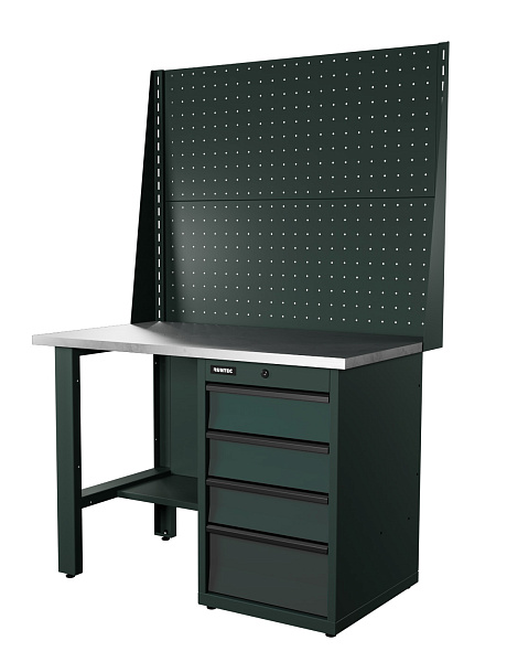Верстак серии Industrial, 1200 мм, оцинк., тумба с 4-мя ящиками, экран 1000, серый RAL 7016, RUNTEC, RTI12Z-TI4-NI-P12-P12-7016