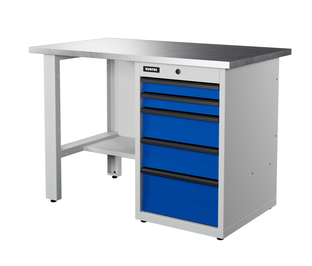 Верстак серии Industrial, 1200 мм, оцинк., тумба с 5-ю ящиками, синий (светло-серый) RAL 5005 (7035)