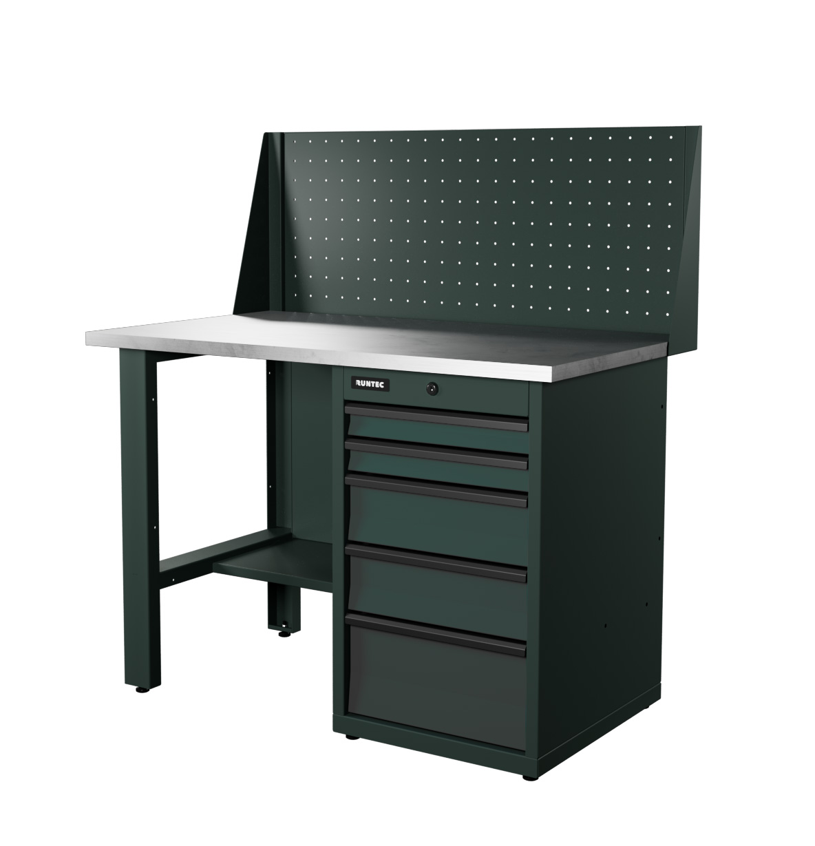 Распределенная нагрузка на верстак достигает 1500 кг благодаря использованию конструкционной стали толщиной от 1 до 2 мм при производстве сборочных составляющих. Эпоксидное порошковое покрытие устойчиво к механическим и химическим воздействиям.