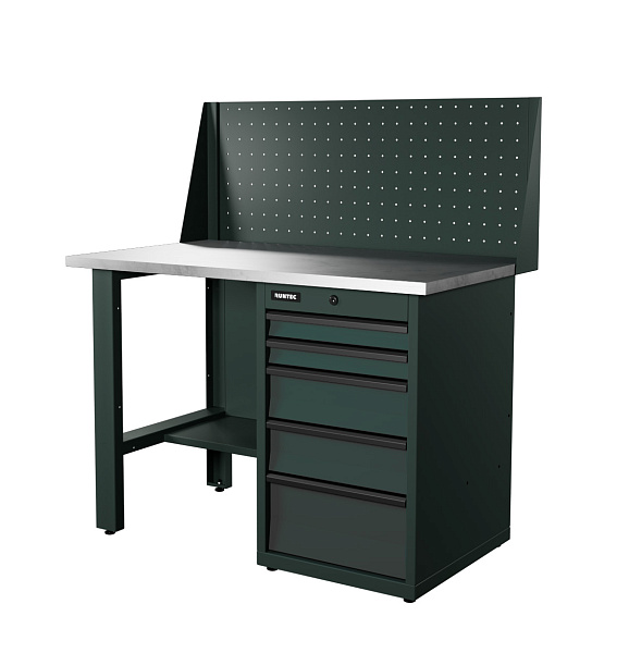 Верстак серии Industrial, 1200 мм, оцинк., тумба с 5-ю ящиками, экран 500, серый RAL 7016, RUNTEC, RTI12Z-TI5-NI-P12-7016
