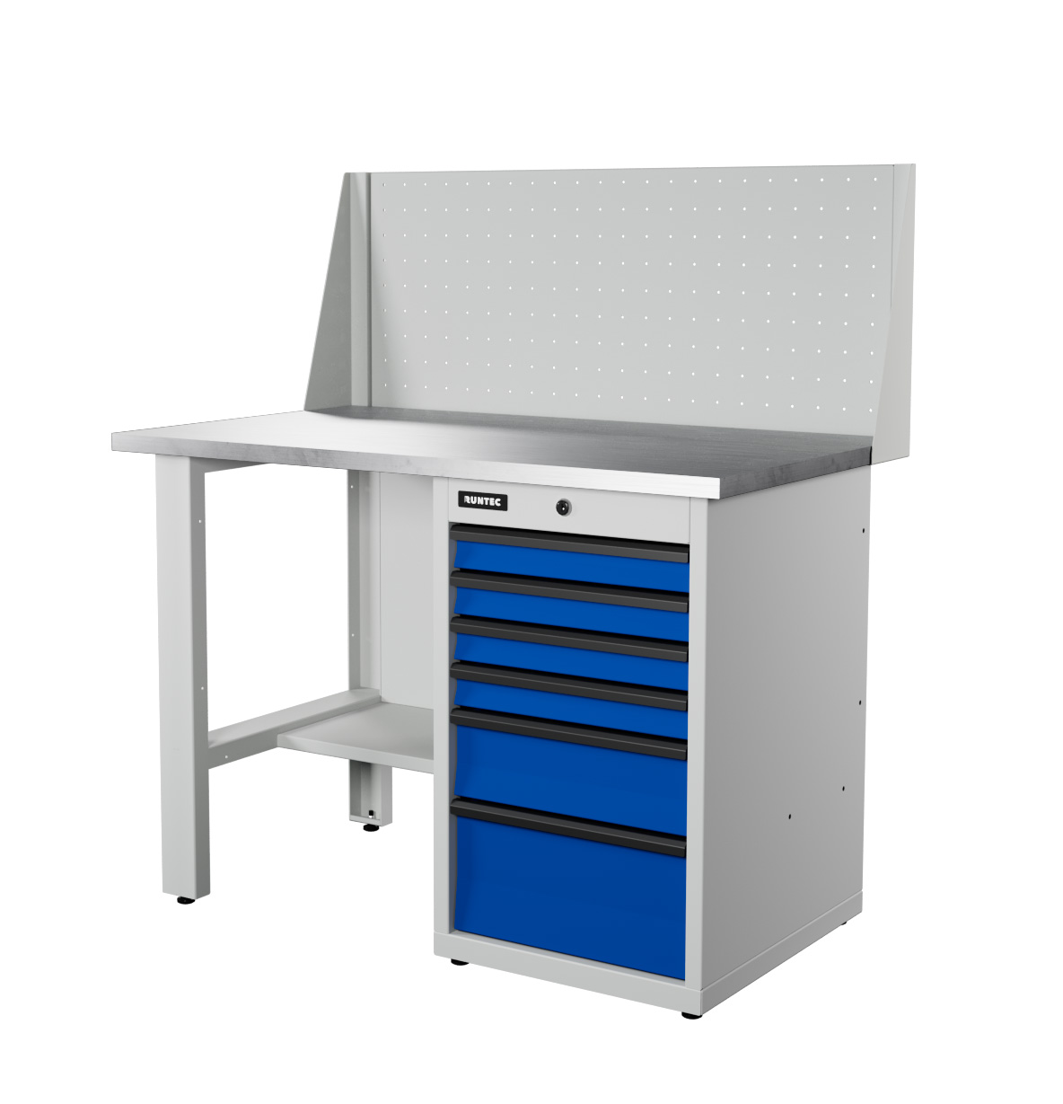 Верстак серии Industrial, 1200 мм, оцинк., тумба с 6-ю ящиками, экран 500, синий (светло-серый) RAL 5005 (7035)