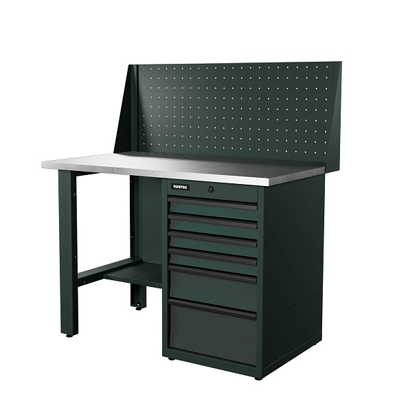 Верстак серии Industrial, 1200 мм, оцинк., тумба с 6-ю ящиками, экран 500, серый RAL 7016, RUNTEC, RTI12Z-TI6-NI-P12-7016