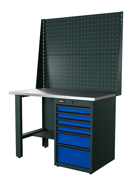 Верстак серии Industrial, 1200 мм, оцинк., тумба с 6-ю ящиками, экран 1000, синий RAL 5005
