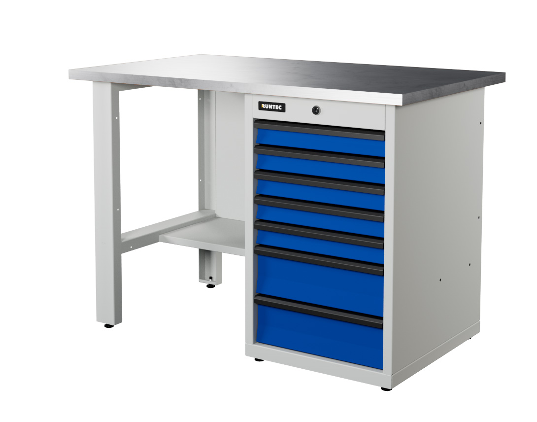 Верстак серии Industrial, 1200 мм, оцинк., тумба с 7-ю ящиками, синий (светло-серый) RAL 5005 (7035)