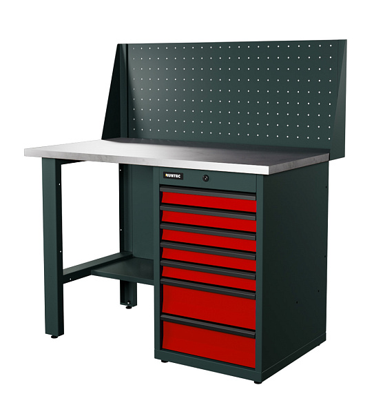 Верстак серии Industrial, 1200 мм, оцинк., тумба с 7-ю ящиками, экран 500, красный RAL 3020