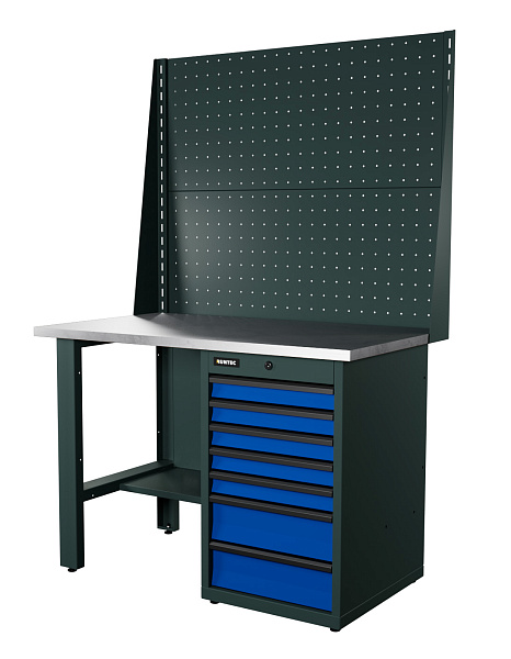 Верстак серии Industrial, 1200 мм, оцинк., тумба с 7-ю ящиками, экран 1000, синий RAL 5005