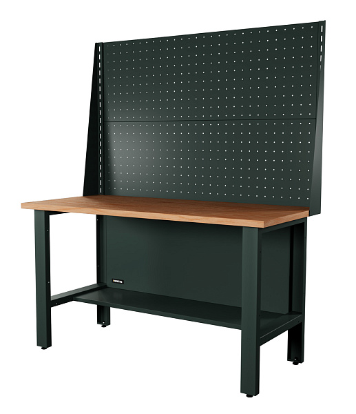 Распределенная нагрузка на верстак достигает 1500 кг благодаря использованию конструкционной стали толщиной от 1 до 2 мм при производстве сборочных составляющих. Эпоксидное порошковое покрытие устойчиво к механическим и химическим воздействиям.