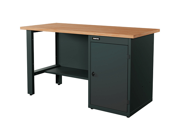 Верстак серии Industrial, 1500 мм, фанера, тумба с дверью, серый RAL 7016, RUNTEC, RTI15F-TI0-NI-7016