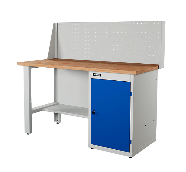 Верстак серии Industrial, 1500 мм, фанера, тумба с дверью, экран 500, синий (светло-серый) RAL 5005 (7035)