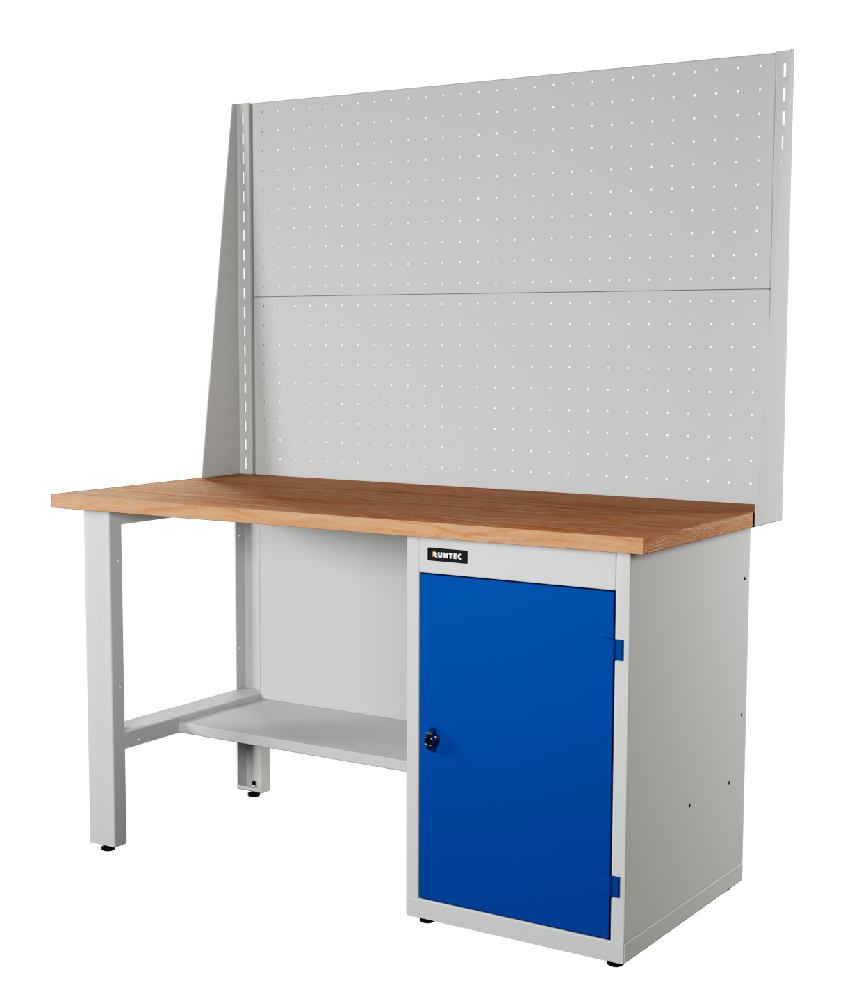 Верстак серии Industrial, 1500 мм, фанера, тумба с дверью, экран 1000, синий (светло-серый) RAL 5005 (7035)