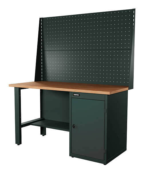 Верстак серии Industrial, 1500 мм, фанера, тумба с дверью, экран 1000, серый RAL 7016