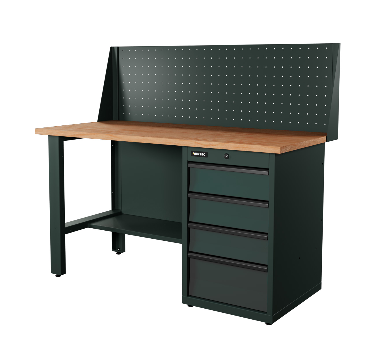 Верстак серии Industrial, 1500 мм, фанера, тумба с 4-мя ящиками, экран 500, серый RAL 7016