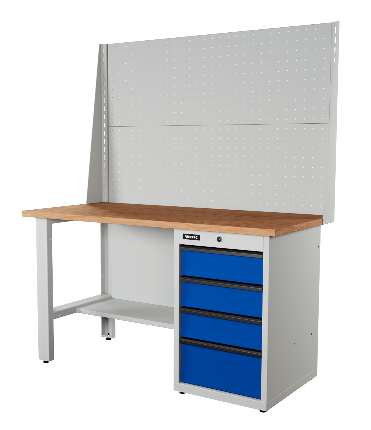 Верстак серии Industrial, 1500 мм, фанера, тумба с 4-мя ящиками, экран 1000, синий (светло-серый) RAL 5005 (7035)