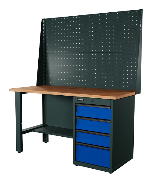 Верстак серии Industrial, 1500 мм, фанера, тумба с 4-мя ящиками, экран 1000, синий RAL 5005, RUNTEC, RTI15F-TI4-NI-P15-P15-5005