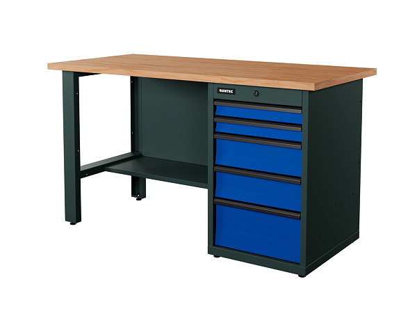 Верстак серии Industrial, 1500 мм, фанера, тумба с 5-ю ящиками, синий RAL 5005