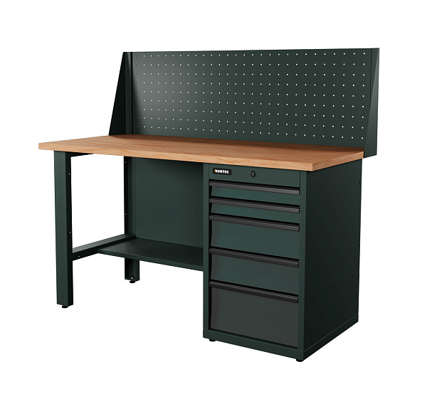 Верстак серии Industrial, 1500 мм, фанера, тумба с 5-ю ящиками, экран 500, серый RAL 7016