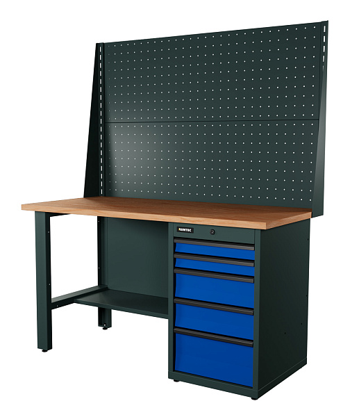 Верстак серии Industrial, 1500 мм, фанера, тумба с 5-ю ящиками, экран 1000, синий RAL 5005