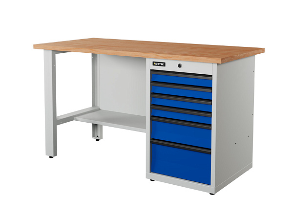 Верстак серии Industrial, 1500 мм, фанера, тумба с 6-ю ящиками, синий (светло-серый) RAL 5005 (7035)