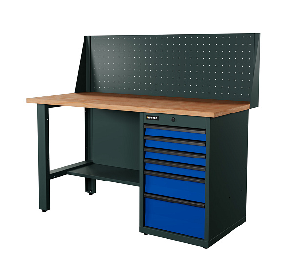 Распределенная нагрузка на верстак достигает 1500 кг благодаря использованию конструкционной стали толщиной от 1 до 2 мм при производстве сборочных составляющих. Эпоксидное порошковое покрытие устойчиво к механическим и химическим воздействиям.