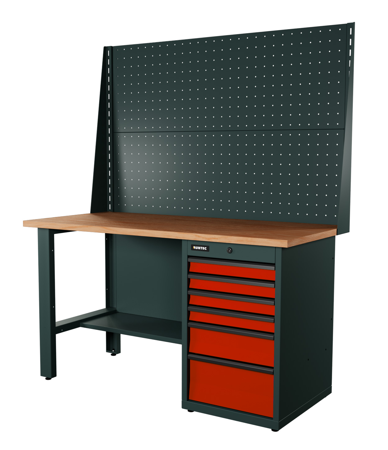 Верстак серии Industrial, 1500 мм, фанера, тумба с 6-ю ящиками, экран 1000, красный RAL 3020