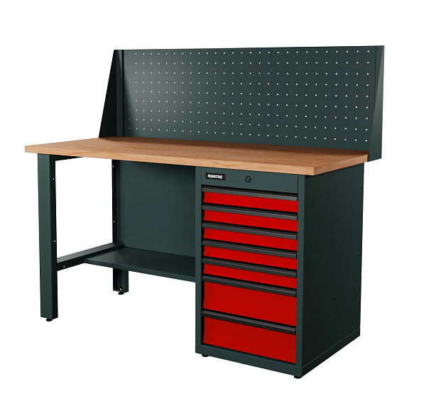 Верстак серии Industrial, 1500 мм, фанера, тумба с 7-ю ящиками, экран 500, красный RAL 3020