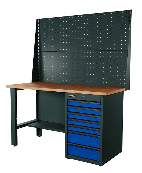 Верстак серии Industrial, 1500 мм, фанера, тумба с 7-ю ящиками, экран 1000, синий RAL 5005