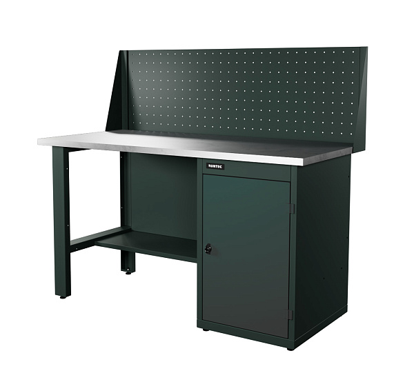 Верстак серии Industrial, 1500 мм, оцинк, тумба с дверью, экран 500, серый RAL 7016