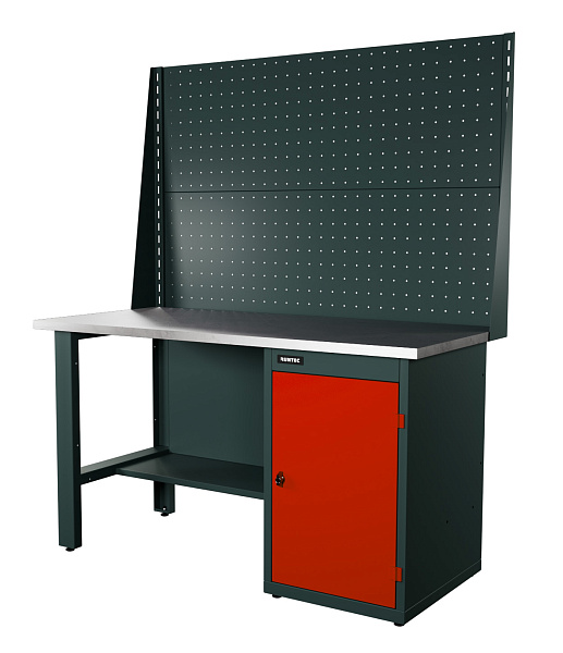 Верстак серии Industrial, 1500 мм, оцинк, тумба с дверью, экран 1000, красный RAL 3020, RUNTEC, RTI15Z-TI0-NI-P15-P15-3020