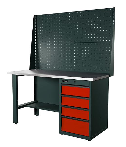Верстак серии Industrial, 1500 мм, оцинк., тумба с 4-мя ящиками, экран 1000, красный RAL 3020