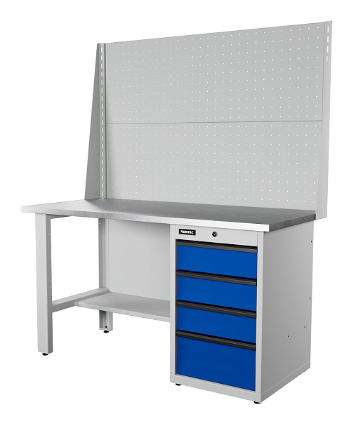 Верстак серии Industrial, 1500 мм, оцинк., тумба с 4-мя ящиками, экран 1000, синий (светло-серый) RAL 5005 (7035)