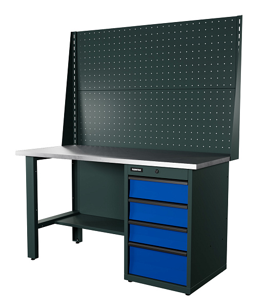 Верстак серии Industrial, 1500 мм, оцинк., тумба с 4-мя ящиками, экран 1000, синий RAL 5005, RUNTEC, RTI15Z-TI4-NI-P15-P15-5005