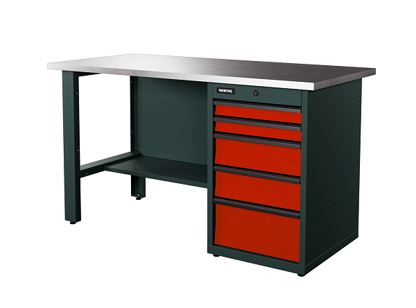 Верстак серии Industrial, 1500 мм, оцинк., тумба с 5-ю ящиками, красный RAL 3020, RUNTEC, RTI15Z-TI5-NI-3020