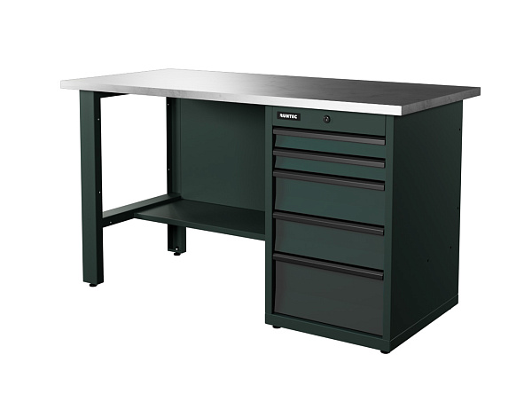 Верстак серии Industrial, 1500 мм, оцинк., тумба с 5-ю ящиками, серый RAL 7016, RUNTEC, RTI15Z-TI5-NI-7016
