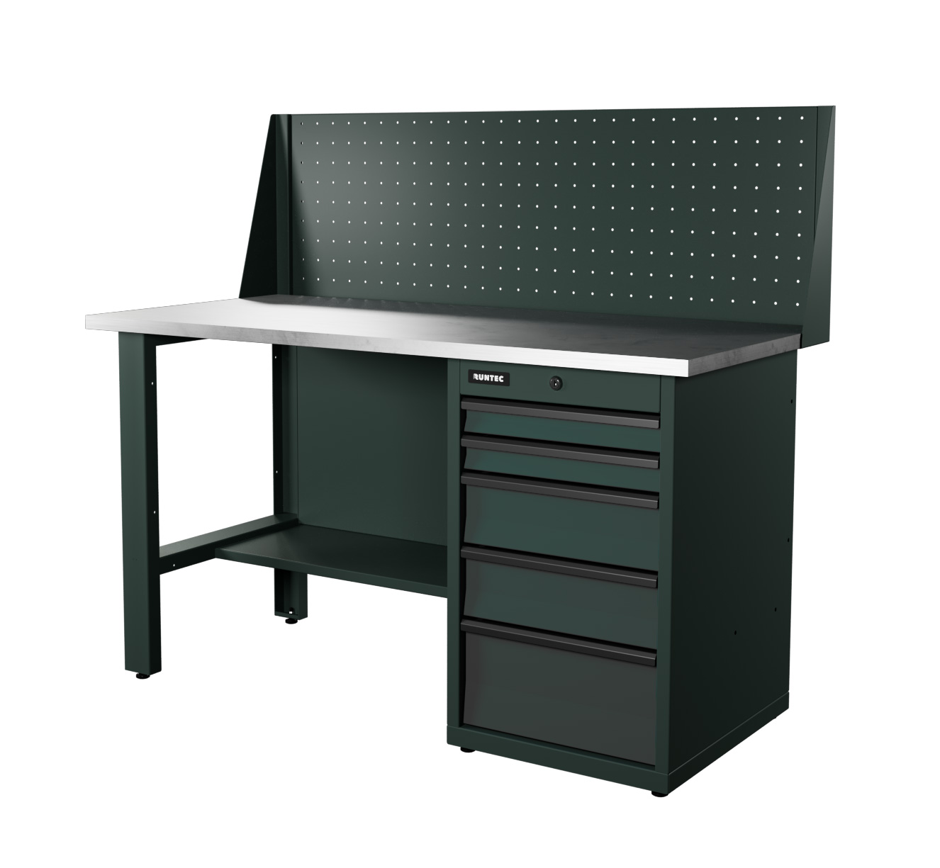 Верстак серии Industrial, 1500 мм, оцинк., тумба с 5-ю ящиками, экран 500, серый RAL 7016