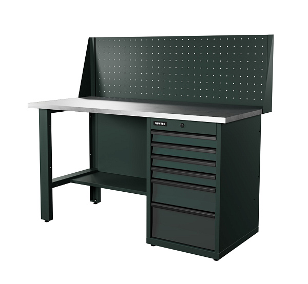 Распределенная нагрузка на верстак достигает 1500 кг благодаря использованию конструкционной стали толщиной от 1 до 2 мм при производстве сборочных составляющих. Эпоксидное порошковое покрытие устойчиво к механическим и химическим воздействиям.