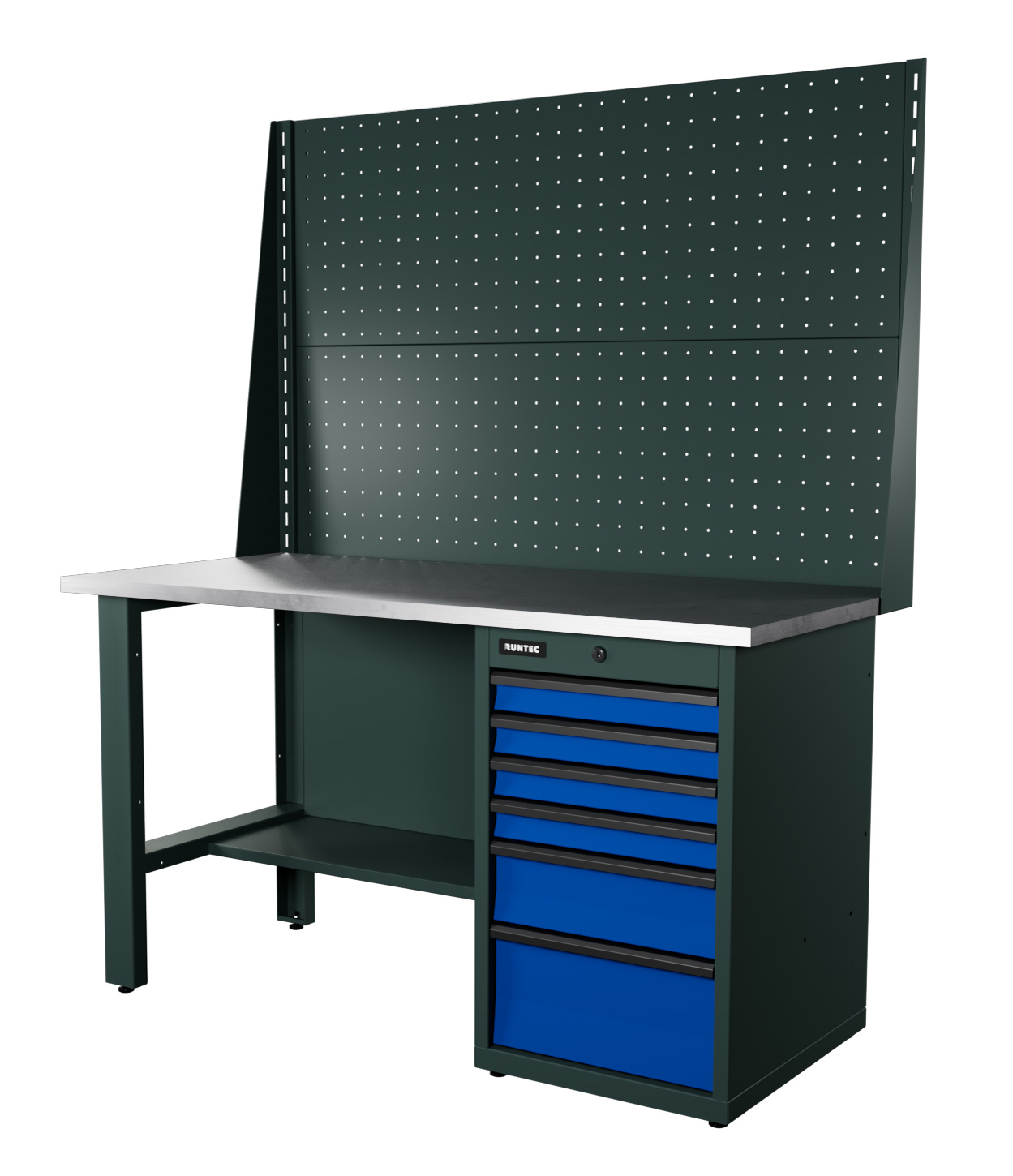 Верстак серии Industrial, 1500 мм, оцинк., тумба с 6-ю ящиками, экран 1000, синий RAL 5005