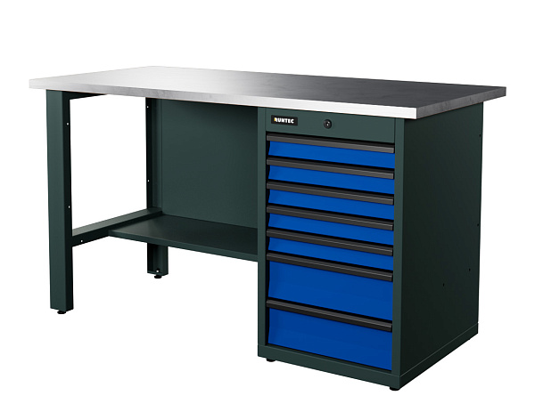 Верстак серии Industrial, 1500 мм, оцинк, тумба с 7-ю ящиками, синий RAL 5005