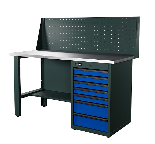 Верстак серии Industrial, 1500 мм, оцинк, тумба с 7-ю ящиками, экран 500, синий RAL 5005, RUNTEC, RTI15Z-TI7-NI-P15-5005
