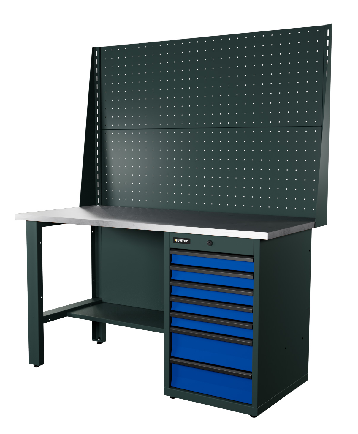 Верстак серии Industrial, 1500 мм, оцинк, тумба с 7-ю ящиками, экран 1000, синий RAL 5005
