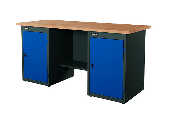 Верстак серии Industrial, 1700 мм, фанера, тумба с дверью + тумба с дверью, синий RAL 5005