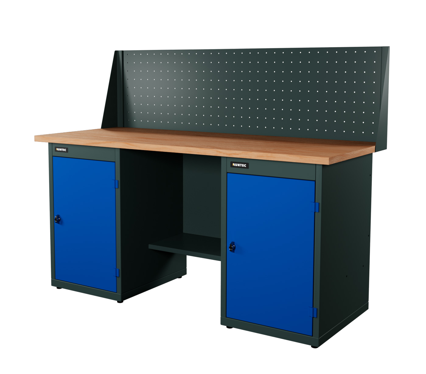 Верстак серии Industrial, 1700 мм, фанера, тумба с дверью + тумба с дверью, экран 500, синий RAL 5005
