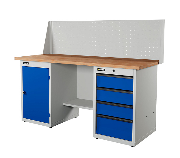 Верстак серии Industrial, 1700 мм, фанера, тумба с дверью + тумба с 4-мя ящиками, экран 500, синий (светло-серый) RAL 50