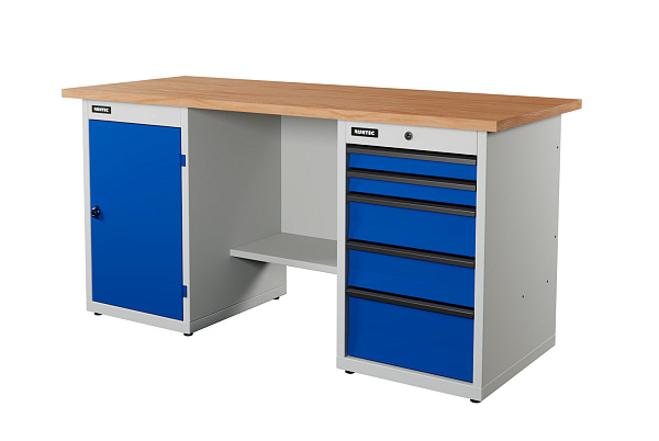 Верстак серии Industrial, 1700 мм, фанера, тумба с дверью + тумба с 5-ю ящиками, синий (светло-серый) RAL 5005 (7035), RUNTEC, RTI17F-TI0-TI5-5005(7035)